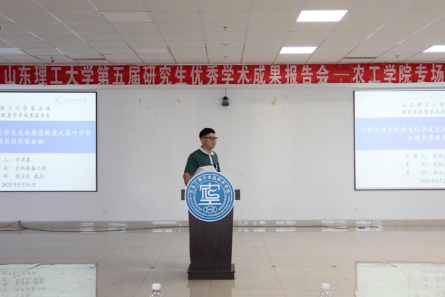 随后,研究生工作部部长赵艳雷教授发表致辞,他表示同学们应当抓住学术交流与学科交叉的机会,进一步掌握学科领域的基础知识,要勇于创新,敢于挑战,将自己的研究成果与现实需求相结合,为社会发展做出积极的贡献。随即,赵艳雷教授宣布山东理工大学第五届研究生优秀学术成果报告会(农工学院专场)——农工学院优秀学术成果交流论坛正式开始。