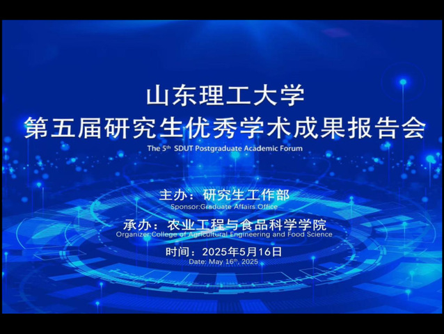 5月16日,由研究生工作部主办、农业工程与食品科学学院承办的山东理工大学第五届研究生优秀学术成果报告会(农工学院专场)——农工学院优秀学术成果交流论坛在6号实验楼1104会议室顺利举行。研究生工作部部长赵艳雷、农工学院党委书记徐启达出席开幕式,研究生教育督导、学院相关负责人、校内专家、系部教师代表及研究生参加报告会,开幕式由农工学院副院长付鹏教授主持。