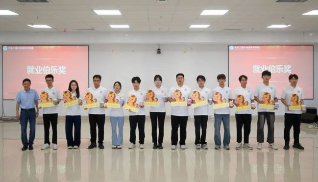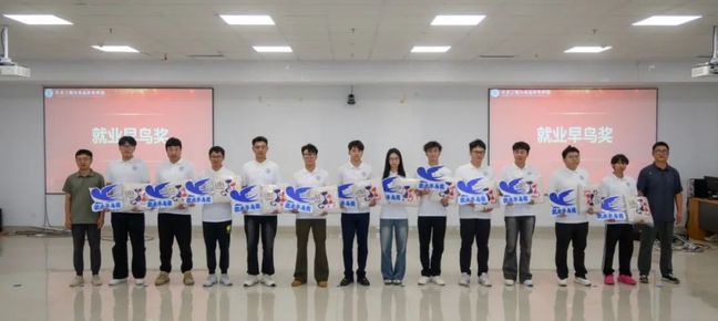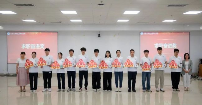 学院领导、教师代表依次为“就业早鸟奖”“求职奋进奖”“升学锦鲤奖”“基层奉献奖”“就业伯乐奖”获奖学生代表颁奖。