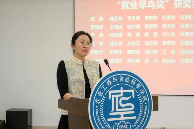 学院党委副书记、纪委书记姜素锦宣读《农业工程与食品科学学院关于表彰就业早鸟奖、求职奋进奖、升学锦鲤奖、基层奉献奖、就业伯乐奖优秀学生的决定》。