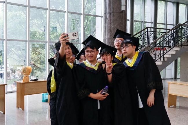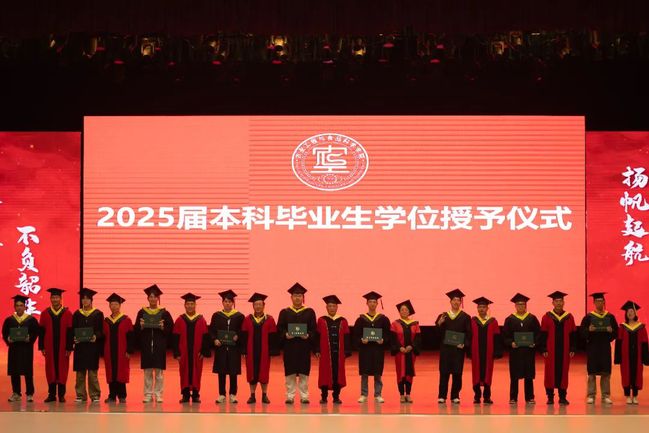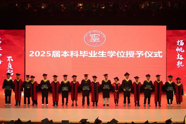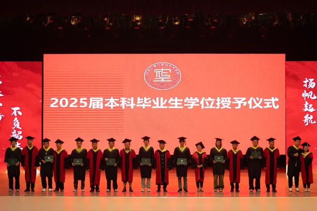 学院学位评定分委会委员为2025届本科毕业生授予学位,拨穗并合影留念。