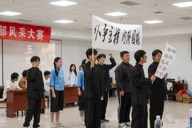 大赛分为团支部基本风貌展示和风采展示两个环节。在基础风貌展示环节,各团支部化身青春“讲述者”,用精心制作的视频为笔,以团支部建设为纸,生动诠释了新时代青年向阳而生、蓬勃向上的精神气质。在风采展示环节,各团支部紧扣时代脉搏,通过小品、话剧、深情朗诵、歌曲等形式,借由古今场景的跨时空碰撞与呼应,生动展现新时代青年赓续红色血脉、矢志建功立业的坚定决心。历史的厚重与现实的担当在表演中交织共鸣,现场气氛热烈,掌声不断。