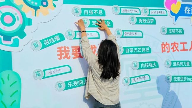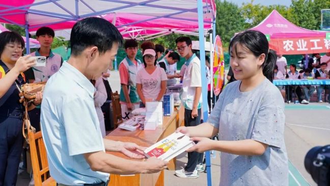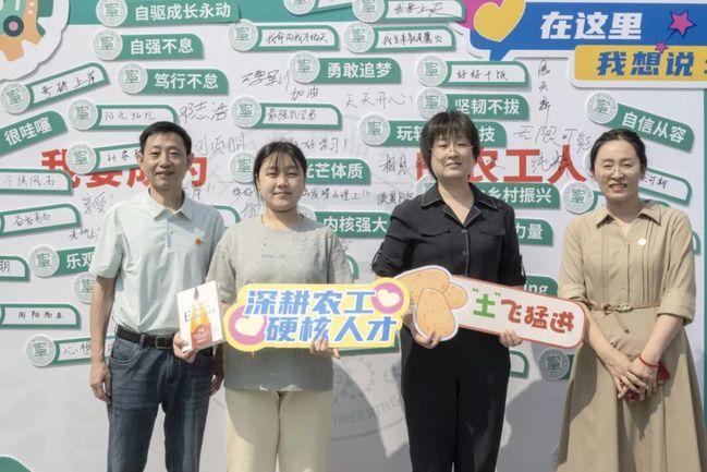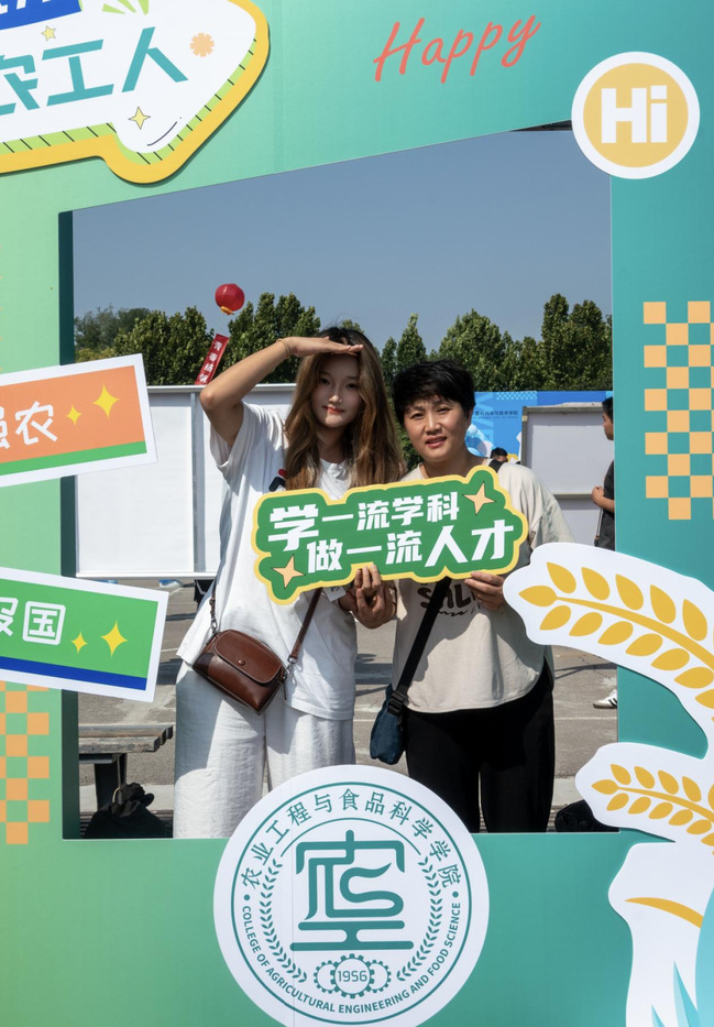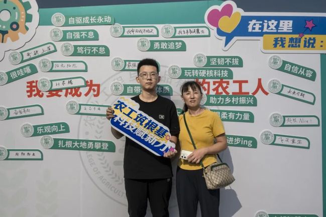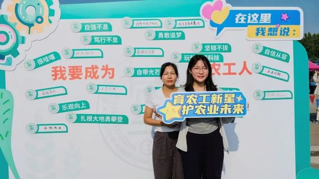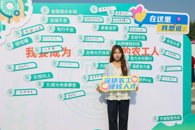 学院精心设计“你好,新同学”背景墙,将专业特色元素融入其中,特色地标融入思政元素。装饰的花车将农业机械等专业元素生动呈现,吸引学生及家长纷纷打卡,在欢笑中激发专业学习的浓厚兴趣。新生寄语互动专区以”我想成为XX的农工人“为主题,新生们用笔尖书写青春梦想。”我想成为勇敢追梦的人“,”我想成为坚韧不拔的人“等真挚话语,展现了新生们对大学生活的美好期待和使命担当。