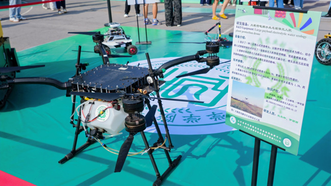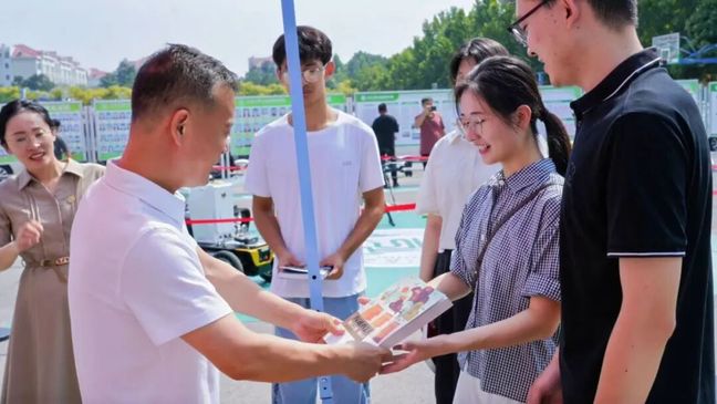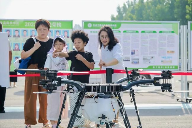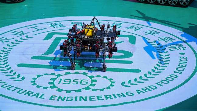 学院介绍、优势特色学科方向、创新创业团队、考研考博光荣榜等宣传展板充分展示学院专业背景、人才培养成果及最新科创成果等。设备展示区停放着玻璃温室专用巡检环境感知机器人开发平台、激光破膜机器人、松灵ROS套件机器人开发平台、智能灌溉机器人、串并联组合智能采摘机器人、大载荷电解水生态植保无人机等智能装备,展示学院强劲学科实力。学院研究生对装备进行讲解,彰显专业自信与实力。