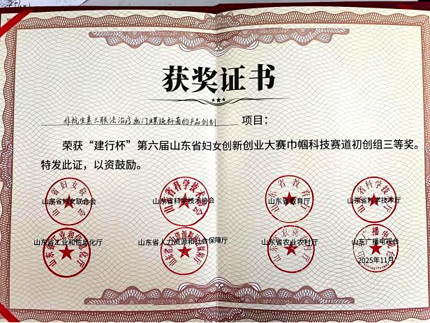 近日,由省妇联、教育厅、科技厅等8部门共同主办的“建行杯”第六届山东省妇女创新创业大赛圆满落幕。365英国上市(集团)有限公司任晓洁老师主持参赛项目“非抗生素三联法治疗幽门螺旋杆菌的产品创制”,获得巾帼科技赛道初创组三等奖。